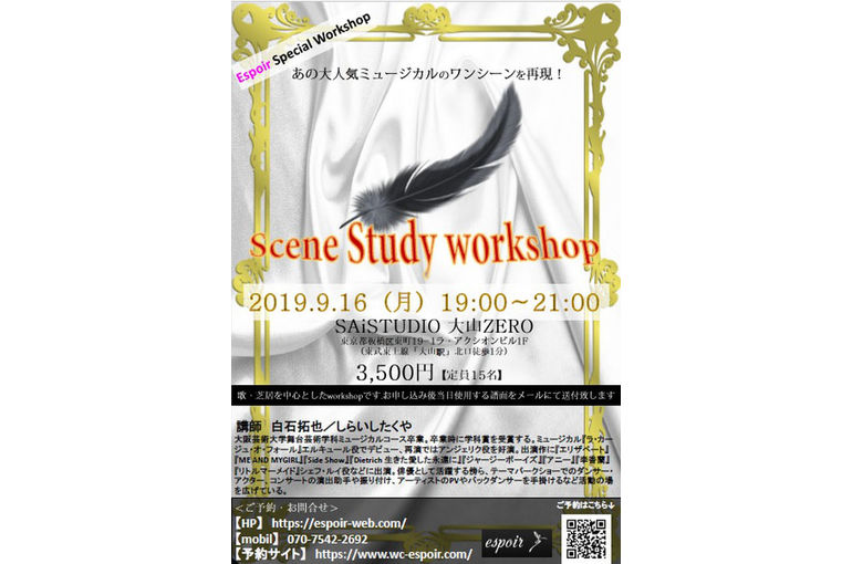16日は歌、芝居中心のシーンをレッスン致します。お申込みの方には、事前に譜面もお送り致します。