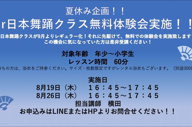 【夏休み企画!】Jr.日本舞踊クラス無料体験会